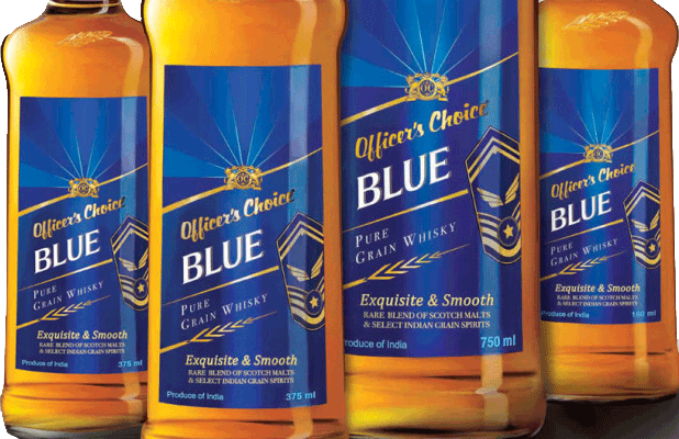 Meistverkaufter Whisky weltweit 2013 Der am meisten verkaufte Whisky weltweit im Jahr 2013 mit insgesamt 23,8 Millionen Kartons ist der Officer's Choice Blue. Auf dem Etikett kann man lesen: "rare blend of scotch Malts & selected indian grain spirits", also ein Blend Whisky aus schottischen Malt und indischen Grain Whiskys. Vor allem die starke Beliebtheit dieses Whiskys in Indien verhalf dem Officer's Choice Blue zu diesem Titel.
