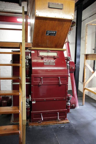 Holztonne, die Grist Pin. Hier wird das Pridukt der Mill