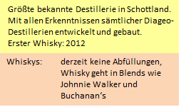 Jahr, also 2013 abgefüllt werden kann. Es wird vorerst wohl keine Abfüllungen unter eigenem Namen geben, sondern die Produktion geht komplett in Blended Whiskys, bzw. verbleibt vorerst im Fass. Hierdurch sollen viele Whiskys ersetzt werden, die Diageo von anderen Destillieren für ihre Blends zukauft. Es bleibt abzuwarten, ob das alle anderen Destillerien überleben werden.